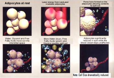 | The controlled cooling of the Cryolipolaser procedure targets and eliminates only fat cells. Other treatment modalities, such as lasers, radio frequency and focused ultrasound, affect fat cells and may affect other adjacent tissue in a way that is not comparable to the Cryolipolaser method of this equipment. |